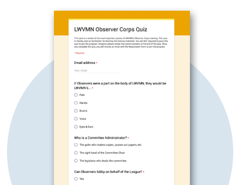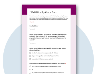 If you’d like to participate in both the Observer Corps program and the Lobby Corps program, you will need to complete the quiz for each program separately.